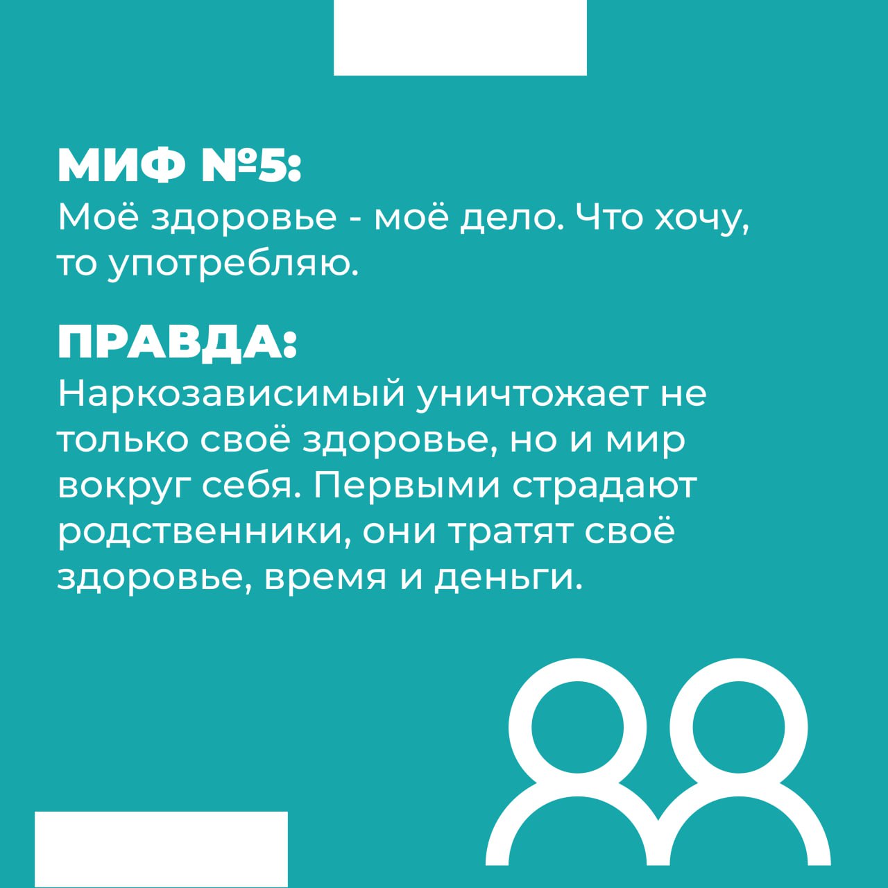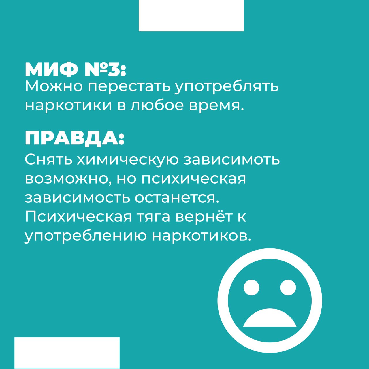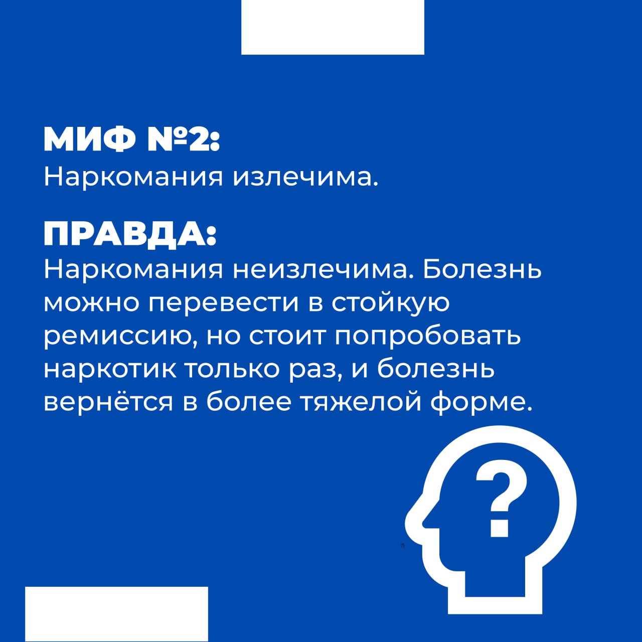 Ложь, которая может стоить жизни. Разрушаем главные мифы о наркотиках В теме наркотиков слишком много опасных мифов, которые маскируют страшную реальность. Пора разобраться! Где вымысел, а где правда, читай в наших карточках |