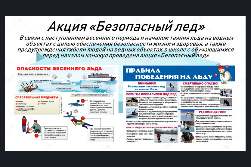 ❄️ II этап Всероссийской акции «Безопасный лёд»: берегите детей! 📅 С 22 декабря 2025 года стартовал II этап Всероссийской акции «Безопасный лёд». Её цель — предупредить происшествия на водоёмах в осенне-зимний период и не допустить гибели людей, особенно детей, на льду зимой. ⚠️ Взрослому человеку вполне понятно, что передвижение по льду связано с опасностью. Но ребёнку это может казаться увлекательной игрой! Пожалуйста, объясните детям, что игры на льду — крайне опасное развлечение. Взрослые, не будьте равнодушными: пресекайте выход детей на лёд. Беспечность может обернуться трагедией. 👨👩👧👦 Уважаемые родители! ❗️ Помните: легкомысленное поведение, незнание и пренебрежение элементарными правилами безопасности — главная причина трагических последствий. 🏘 Уважаемые жители Качугского района! 🆘 При возникновении нештатных ситуаций звоните на службу экстренного реагирования по телефону «112» или на телефон оперативного дежурного ЕДДС Качугского района: 8 (39540) 31-077. |