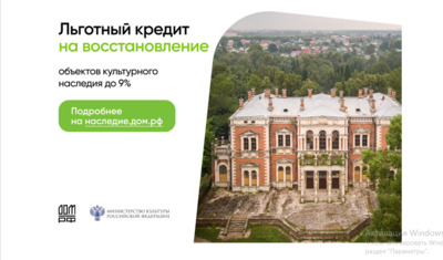 О программе льготного кредитования работ по сохранению и восстановлению объектов культурного наследия с помощью мер государственной поддержки. Минкультуры России совместно с АО «ДОМ.РФ» разработан механизм привлечения внебюджетного финансирования для восстановления объектов культурного наследия, находящихся в неудовлетворительном состоянии, который предусматривает льготное кредитование проектов по сохранению объектов культурного наследия. Программа направлена на поддержку инвесторов и их проектов по восстановлению объектов культурного наследия, находящихся в неудовлетворительном состоянии, в целях приведения объектов культурного наследия в удовлетворительное состояние за счет внебюджетных средств и приспособления их для современного использования. Подробнее по ссылке: https://наследие.дом.рф/?utm_source=partners&utm_medium=referral&utm_campaign=OKN_brand&utm_content=banners&utm_term=11_2025. |